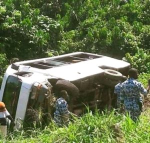 11 octobre 2018Après une fourgonnette qui transportait les Urnes qui se sont noyés dans un fleuve Gobriako faisant un gendarme blessé grave, ce jeudi 11 octobre 2018, c’est autour de pauvres policiers en partance pour la ville de Mankono dont le car s’est renversé dans un ravin.