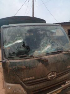 véhicule endommagée par les mêmes clandestins qui sont à l’aise en Côte d’Ivoire