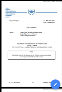 Voici les documents qui attestent de la sortie de Gbagbo et Blé Goudé le 15 janvier 2019