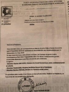 Heureusement que Bédié est vivant et- qui se trouve en ce jour à Yamoussoukro aux obsèques de son frères Jean Konan Bani. Etant la bas, il a fendu un communiqué pour laisser un dernier avertissement à ses militants désireux de se rendre à cette assemblée générale constitutive du parti unifié de ne pas le faire .Car ils seront exclus du Pdci. Et que tous ceux qui s’y rendront seront constitués comme des imposteurs. Mais hélas ! L’imposture dont il avait tant peur se pratique sous ses yeux.